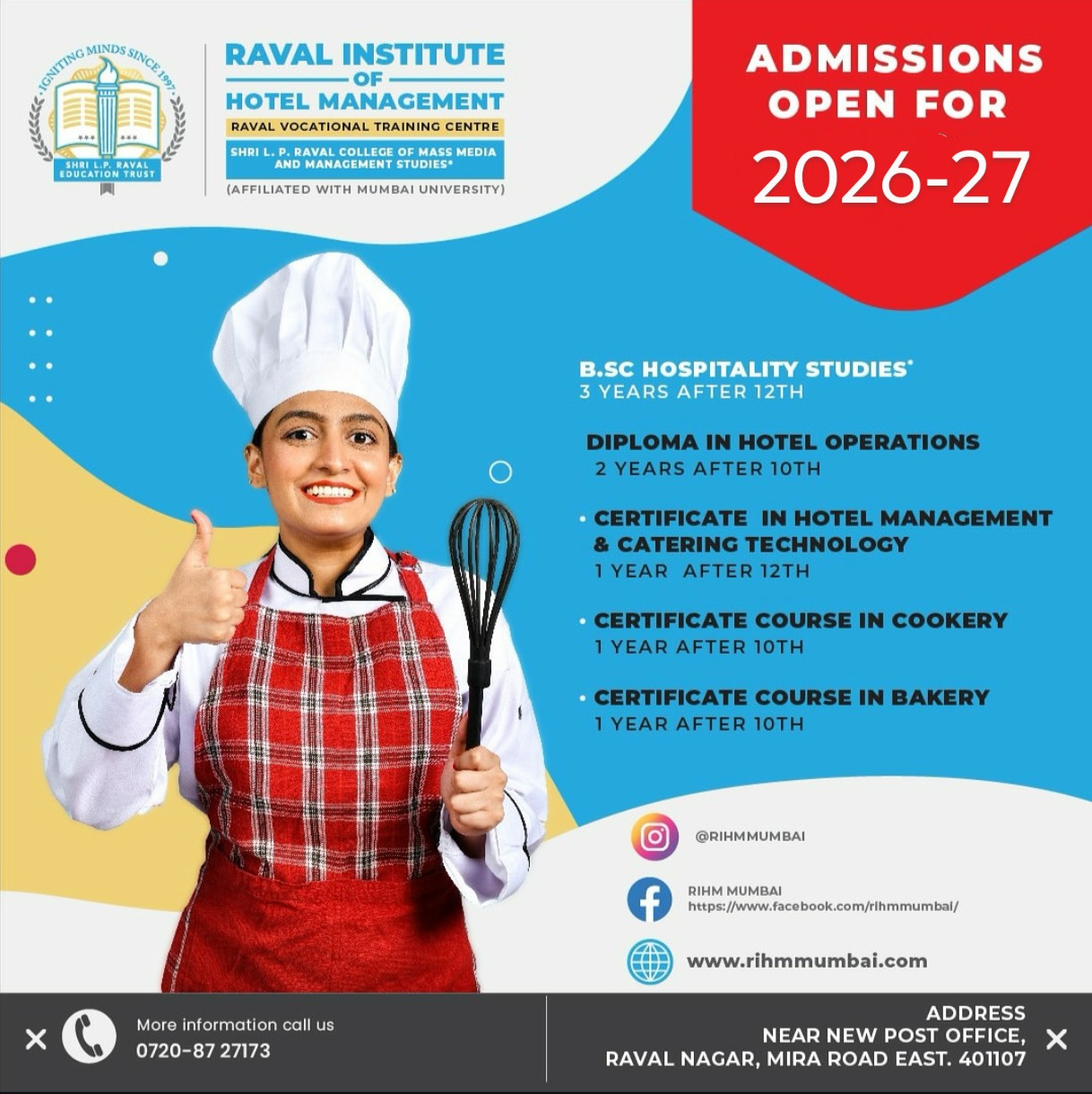 Admissions open for 2026-27| We are offering free counselling session on career in hospitality industry |